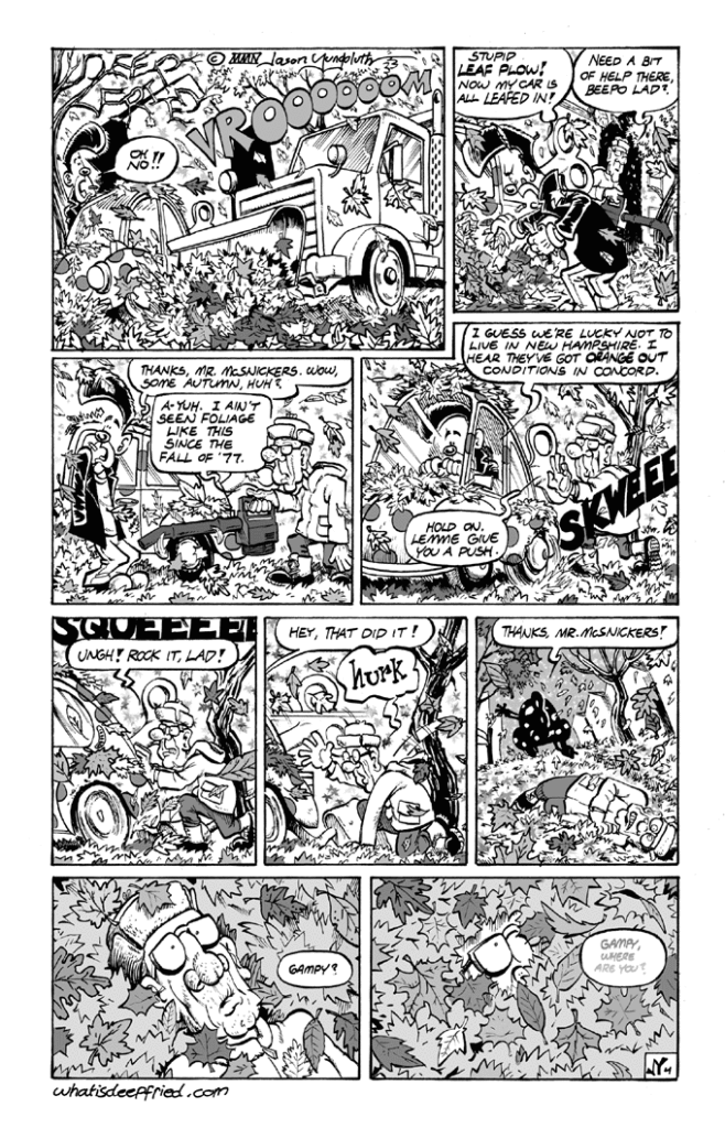 Orange Out by JY on November 30, 2004 at 4:11 pm Chapter: 4 Snooter! └ Tags: autumn, Beepo, Deep Fried, Jason Yungbluth, leaves, Roadkill Comment