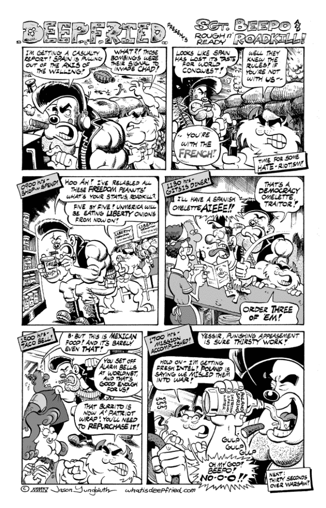 Spanish Imposition by JY on March 24, 2004 at 3:24 pm Chapter: 1 Mixed Nutz └ Tags: Beepo, Deep Fried, Jason Yungbluth, patriotism, Roadkill Comment