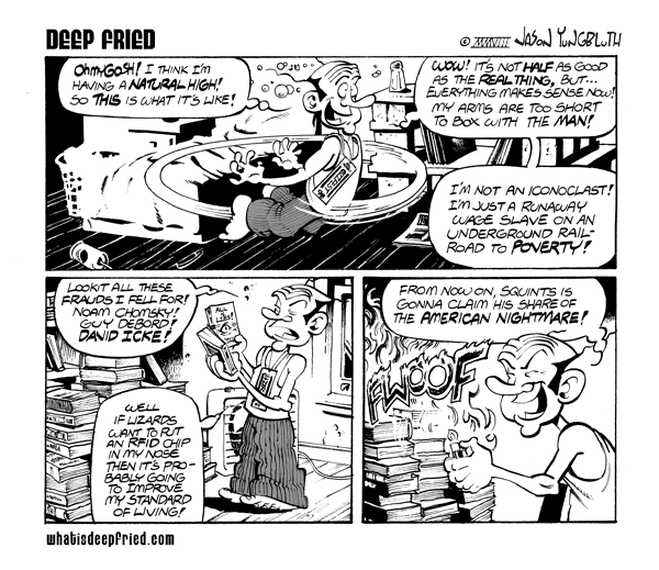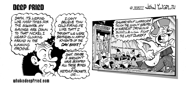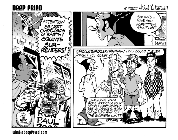 Jason will be hard at work in the coming weeks drawing the cartoons that make the world smile. In the meantime, several of the web’s most popular cartoonists have agreed to let their comics run in place of Deep Fried. Enjoy! (Bonus! Two Parodies[…]↓ Read the rest of this entry…