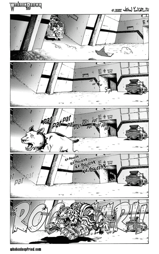 Weapon Brown 261 by JY on April 21, 2014 at 12:00 am Chapter: 11 Who's Your Daddy  └ Tags: anger, blood, cars, Garage, HOBS, running, Snoop, tiger 14 Comments