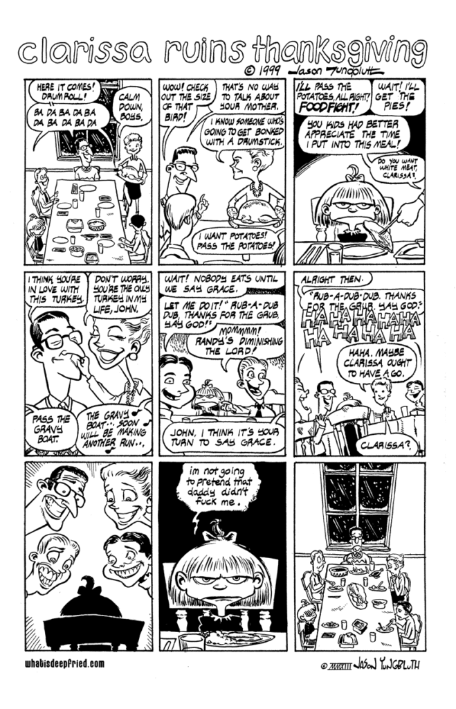 Chuck and Anne have taken the day off to enjoy some shmoo together for Thanksgiving (no one remembers what a real turkey tasted like, so the best they can conjure is a shmoo tofurkey). In the meantime, enjoy this perennial[…]↓ Read the rest of this entry…