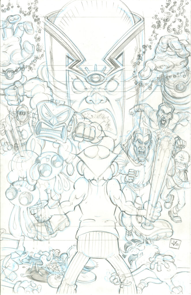 Incoming! Schizophrenemies Cover Pencils! by JY on March 18, 2026 at 3:04 pm Chapter: 15 Schizophrenemies Enjoy the cover sketch for the upcoming Deep Fried: The Hero’s Journey issue #6! ENJOY IT OR ELSE!! └ Tags: comic book, cover, Deep Fried, Jason Yungbluth, penicls, the hero's journey 1 Comment