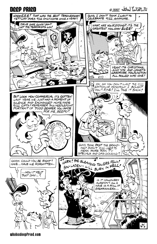 9/11 fatigue by JY on September 11, 2006 at 12:38 pm Chapter: 1 Mixed Nutz └ Tags: 9/11, Beepo, Deep Fried, Jason Yungbluth, Roadkill, tragiversary Comment