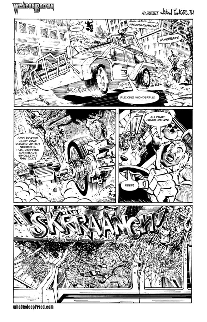 Weapon Brown 43 by JY on April 3, 2013 at 12:00 am Chapter: 3 Troglodytes └ Tags: exploding car, meat, mutants, trogs 11 Comments