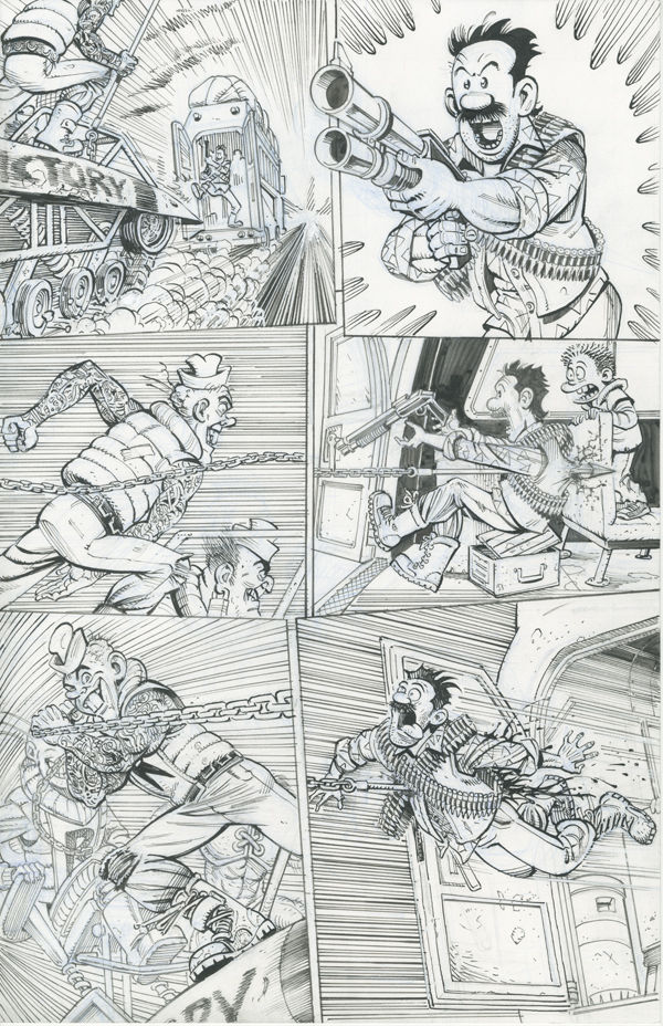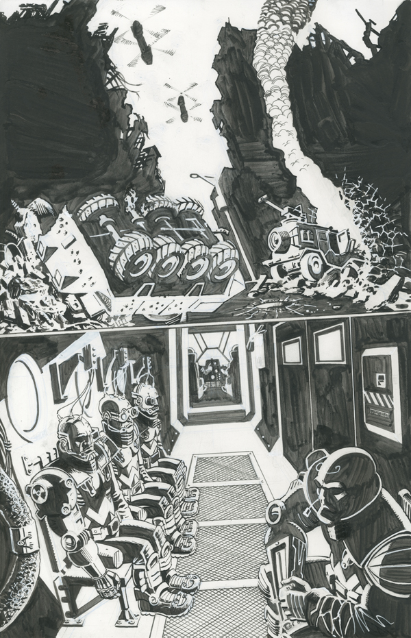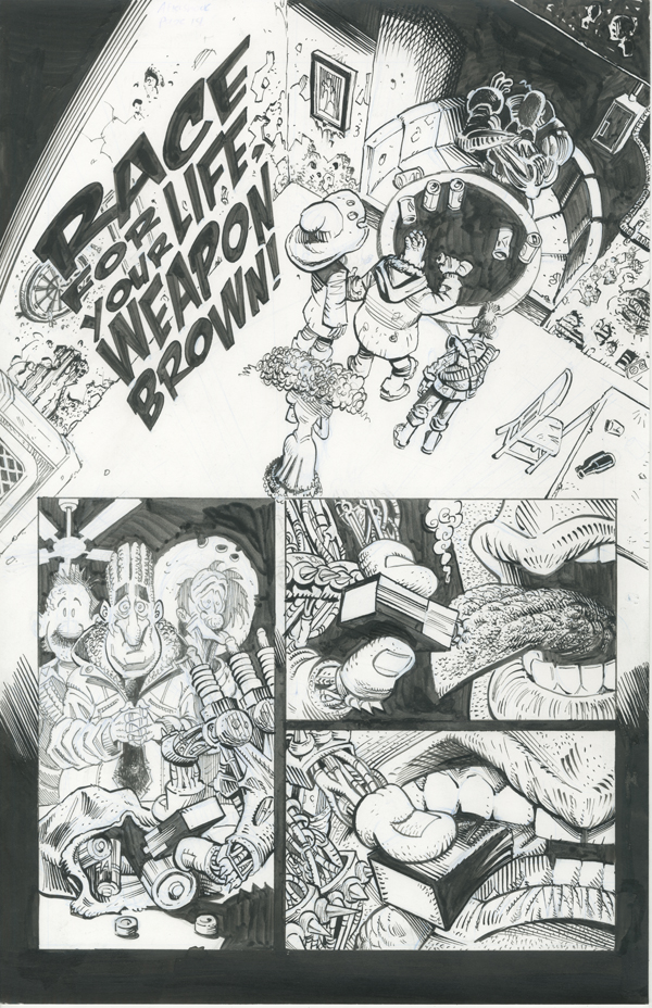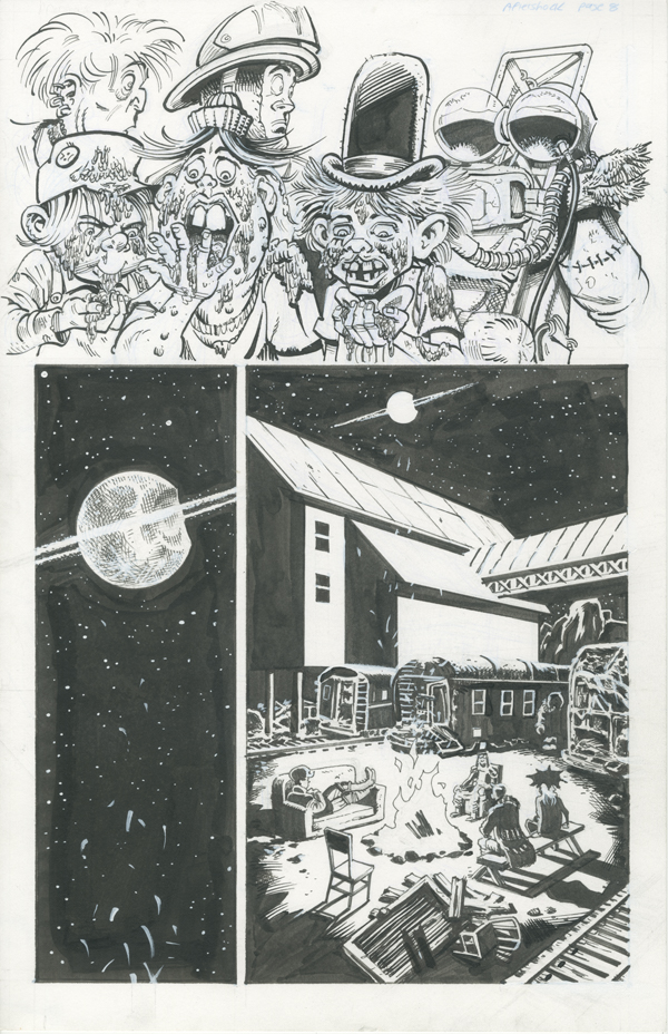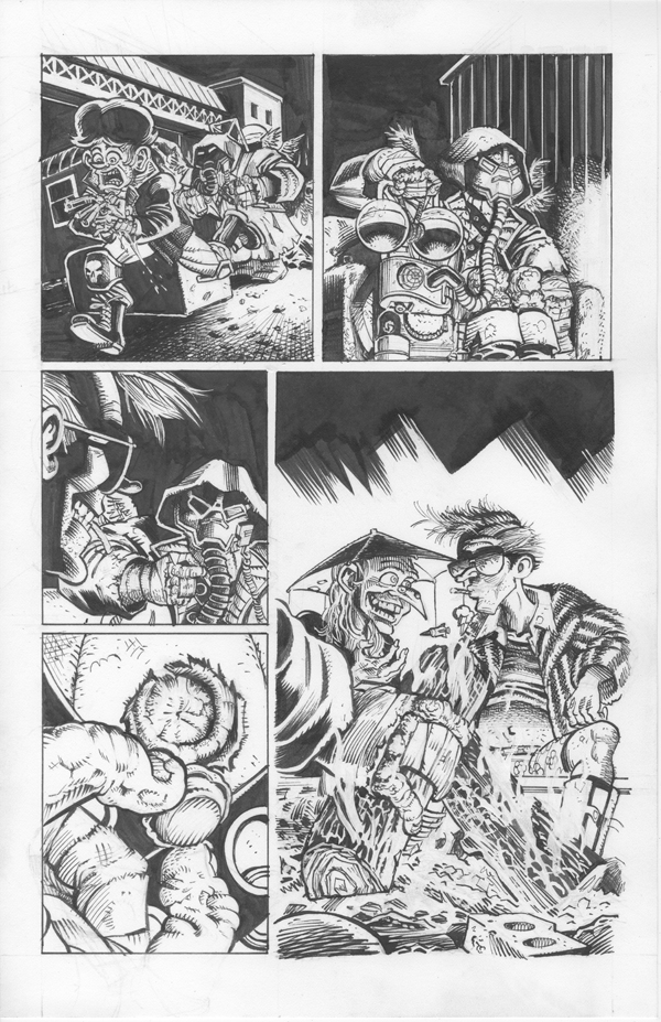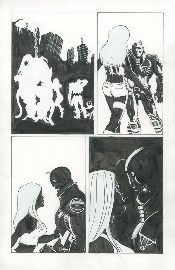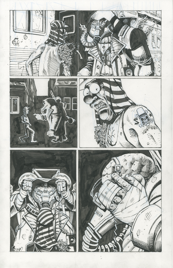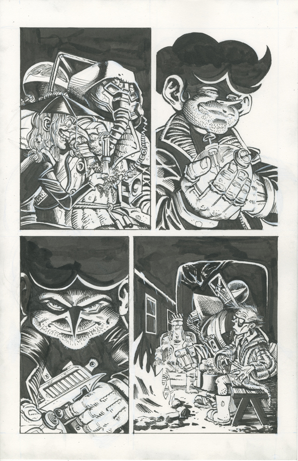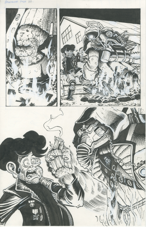 These pages are from the 2023 Weapon Brown: Aftershock graphic novel. Click on the thumbnails to see a larger image. All art is pen and ink on Bristol board, 11″ x 17″. Contact Jason Yungbluth here with your purchase inquiries!