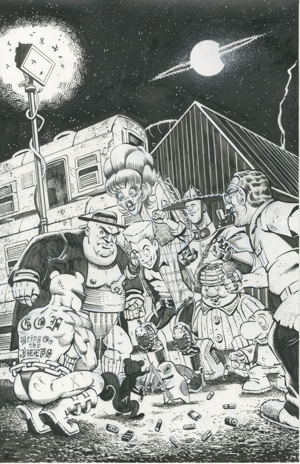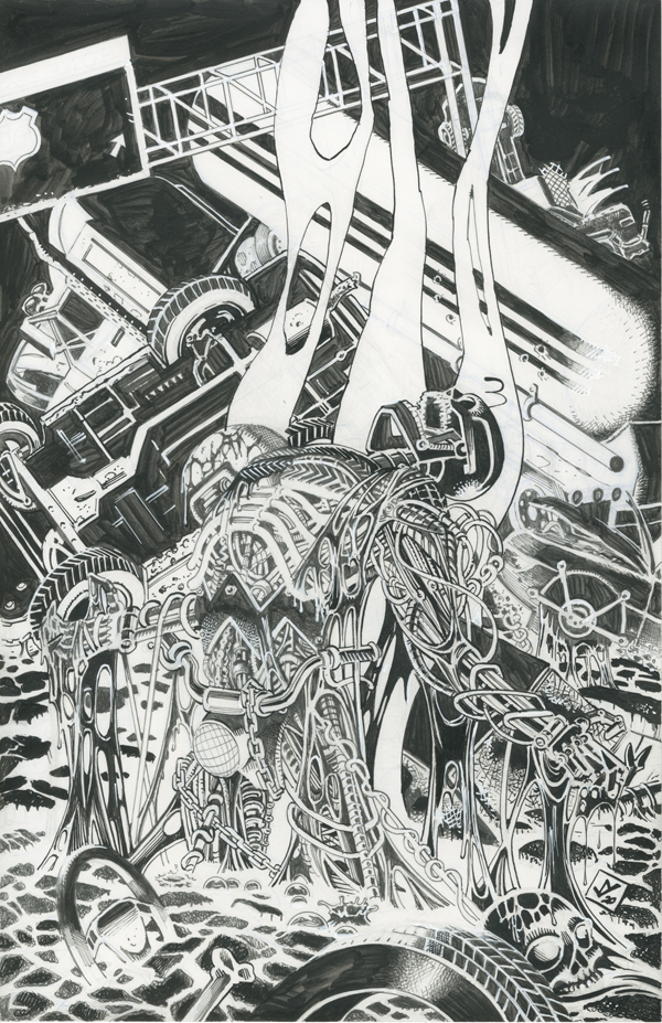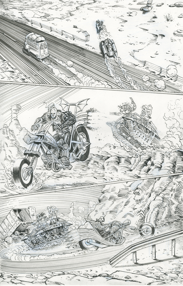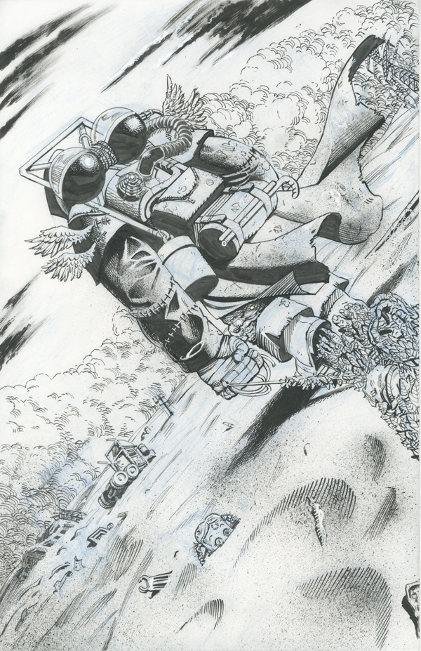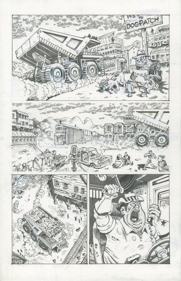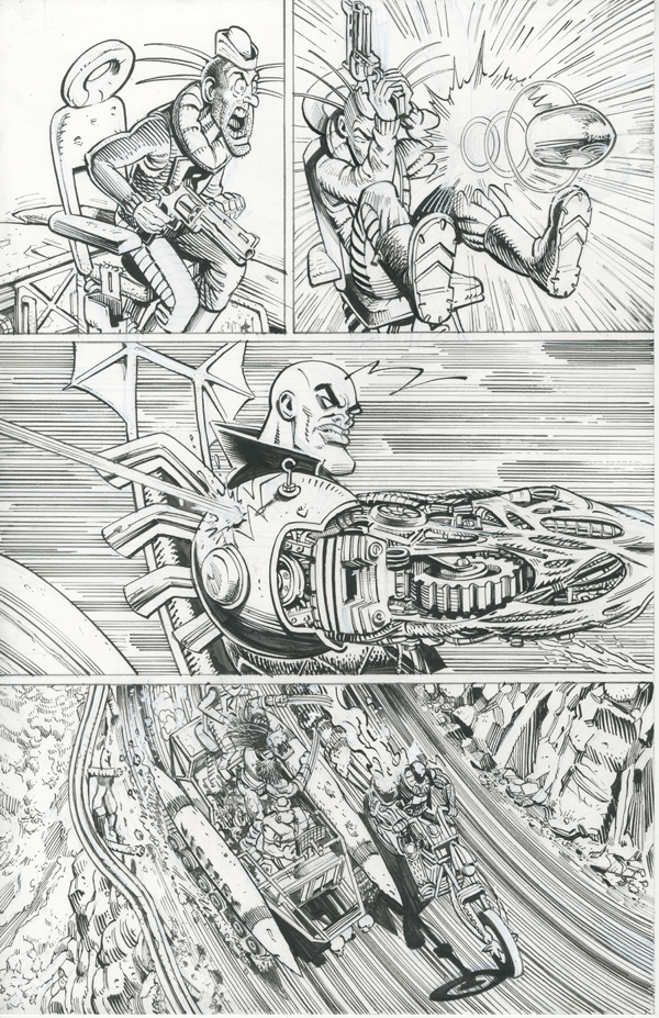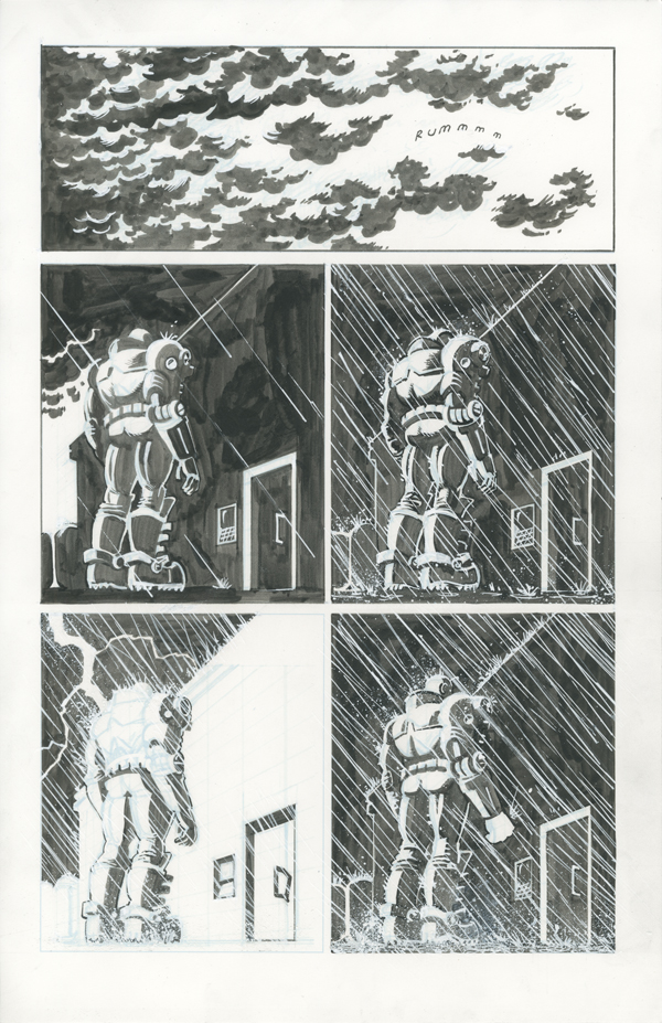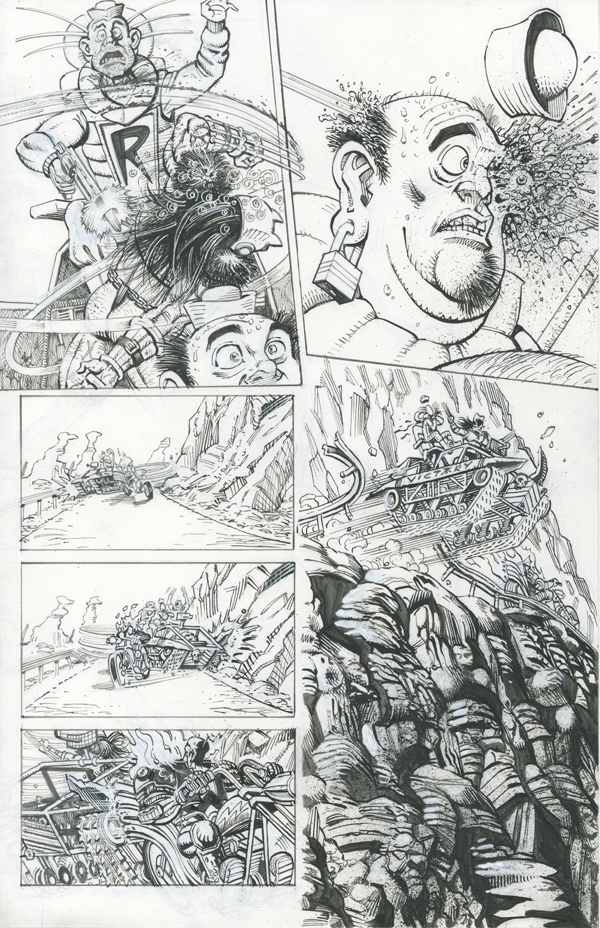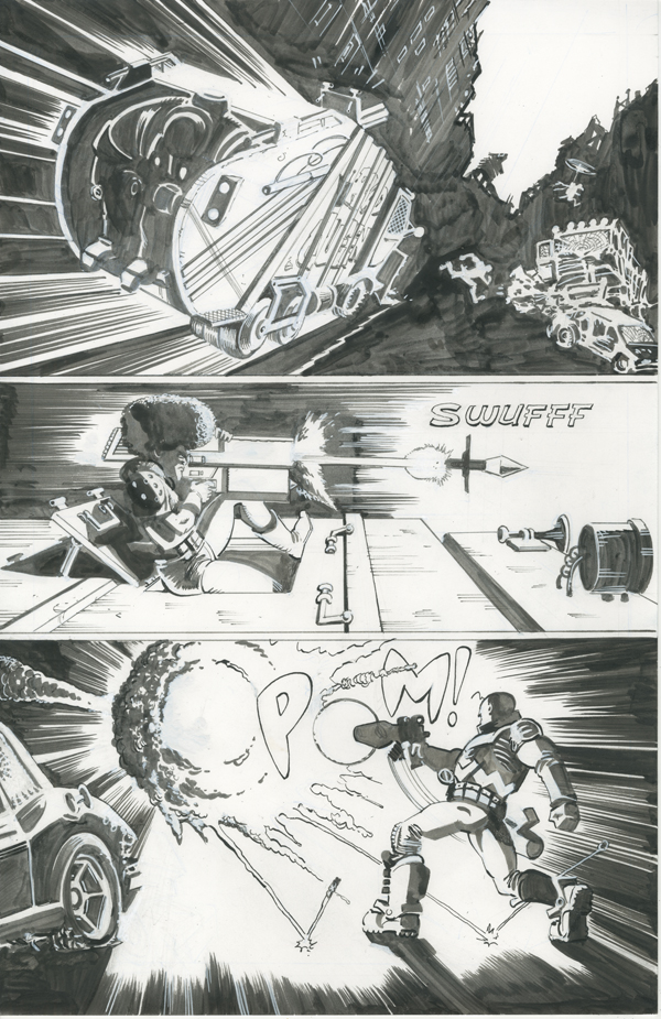 These pages are from the 2023 Weapon Brown: Aftershock graphic novel. Click on the thumbnails to see a larger image. All art is pen and ink on Bristol board, 11″ x 17″. Contact Jason Yungbluth here with your purchase inquiries!